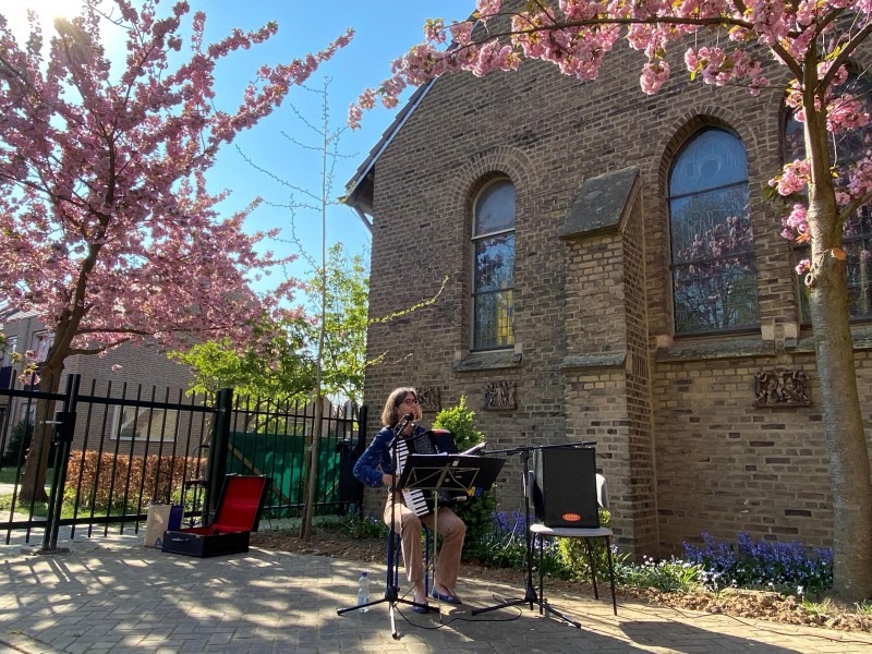 ‘’ Ondanks de grotere afstand, ontvangen we vele hartverwarmende reacties. De muzikanten kunnen met de buitenconcerten weer vele mensen blij maken!